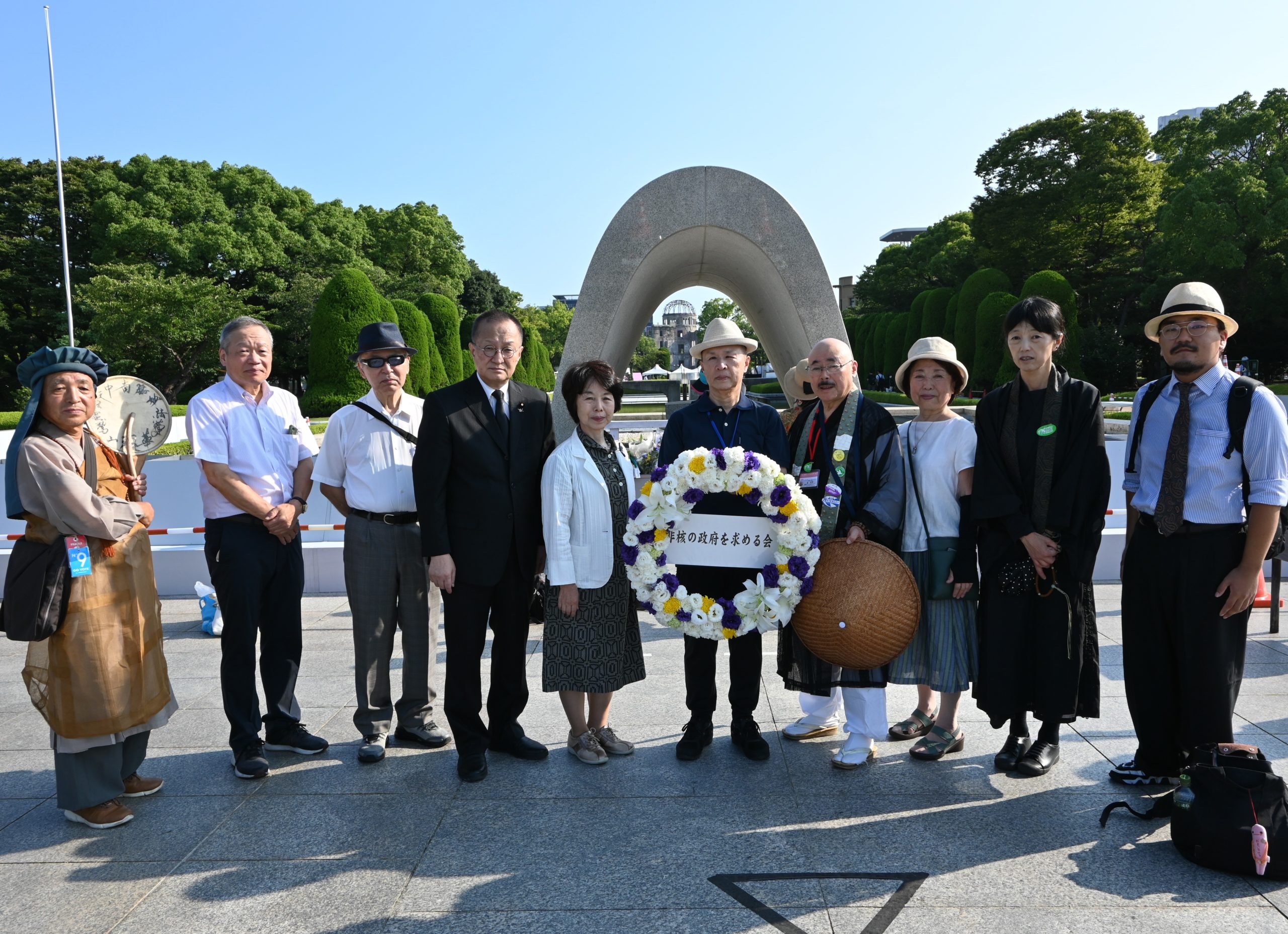 非核の政府を求める会は8月5日、広島市の原爆死没者慰霊碑を訪れて献花しました。