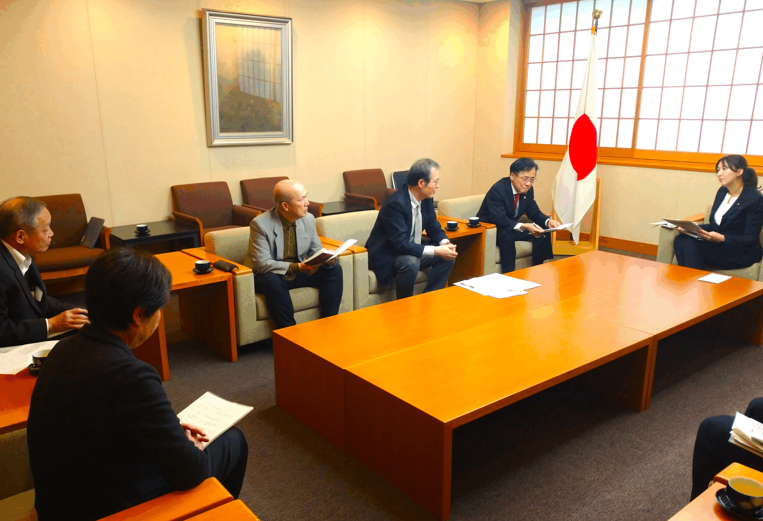 要請には、小沢隆一(東京慈恵会医科大学名誉教授)と野口邦和(元日本大学准教授)の両常任世話人、小畑雅子全国世話人(婦団連会長)、川村好伸事務室長が参加。日本共産党の井上哲士参議院議員(同会世話人)が同席しました。
